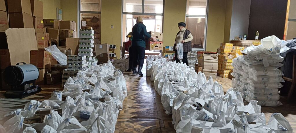 Durante la giornata i volontari fanno tutto ciò che è necessario per aiutare la popolazione. “Adesso stiamo lavorando in una fattoria, che serve a produrre cibo e latte per le persone. Abbiamo anche dato una mano a ricostruire la sede di questa comunità, una ex casa del popolo che è stata per metà distrutta da due droni. Abbiamo dato una mano a risistemarla con una manovalanza molto poco qualificata da parte nostra e durante il giorno andiamo a distribuire aiuti e viviamo con loro”.