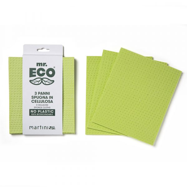 Panno spugna in cellulosa vegetale delicato su tutte le superfici della cucina e del bagno, garantiscono resistenza e lunga durata. – 3 pz. (involucro carta FSC e spugna compostabile).